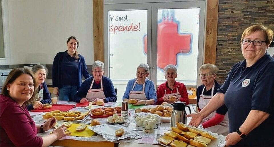 Niederense – Der Geruch von Kaffee, frisch gekochten Eiern und Schinken steigt jedem in die Nase, wenn er nach der Blutspende den Nebenraum betritt, in dem ein üppiges Buffet steht – hübsch garniert und mit viel Liebe zubereitet. Verantwortlich für diesen Augen- und auch Gaumenschmaus sind die freiwilligen Helfer des Deutschen Roten Kreuzes (DRK). Sie warten hinter einer Trennwand auf eine neue Ladung Brötchen und die Stimmung ist ausgelassen. „Wir machen alles! Und wir machen es super gerne“, sagt Helene Schwob. Und damit auch wirklich niemand hungern muss, gibt es eine breite Auswahl an Käse und Wurstbrötchen und auch Gemüse wie zum Beispiel Gurken darf nicht fehlen. „Wir haben heute mal mit 130 Brötchen gerechnet“, erklärt Blutspendebeauftragte Sylvia Wilhelm vom DRK: „Schließlich muss es auch für alle reichen."Viele würden noch immer spontan zur Blutspende vorbeikommen, obwohl es auch die Möglichkeit gibt, einen Termin online zu vereinbaren. Aber gerade Ältere kommen oft ohne. „Es würde uns helfen, wenn mehr einen Termin vereinbaren würden, weil es dann übersichtlicher ist“, sagt Wilhelm.