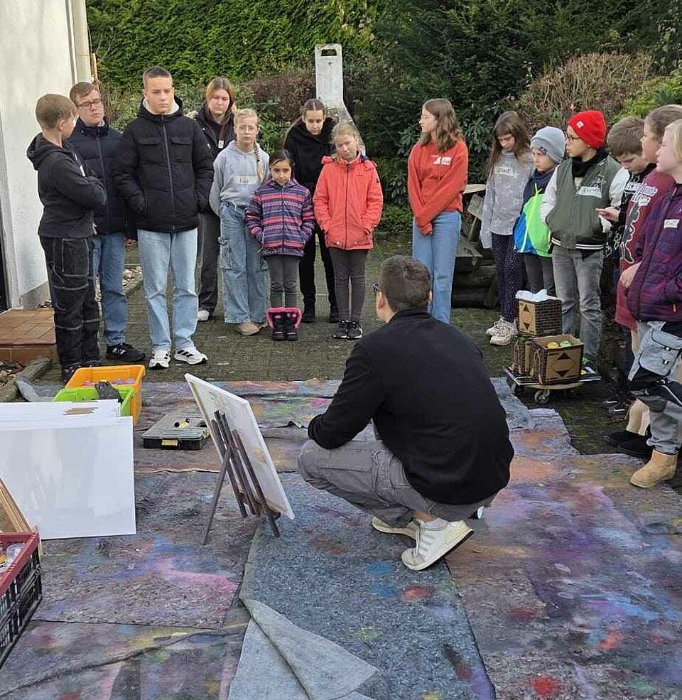 Neben dem großen Gemeinschaftsprojekt hatte jedes Kind außerdem die Möglichkeit, ein eigenes Kunstwerk für Zuhause zu gestalten. Julian erklärte ausführlich verschiedene Techniken, zeigte Tipps und Tricks – und unsere JRK-Kids konnten alles direkt selbst ausprobieren und mitgestalten.